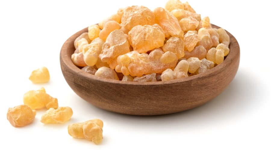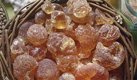 A natural gum made of the hardened sap of two species of the acacia tree.